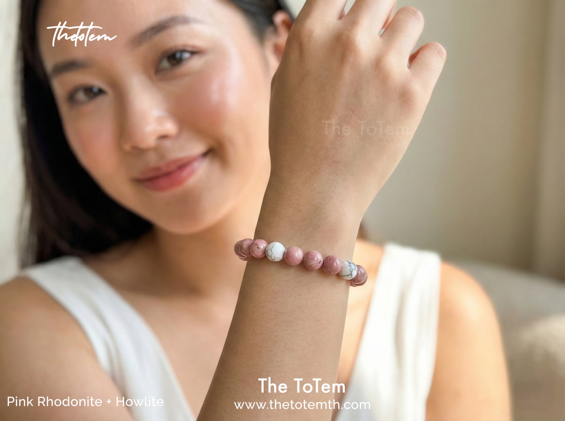 กำไลหินมงคล Pink Rhodonite Howlite Ep.43