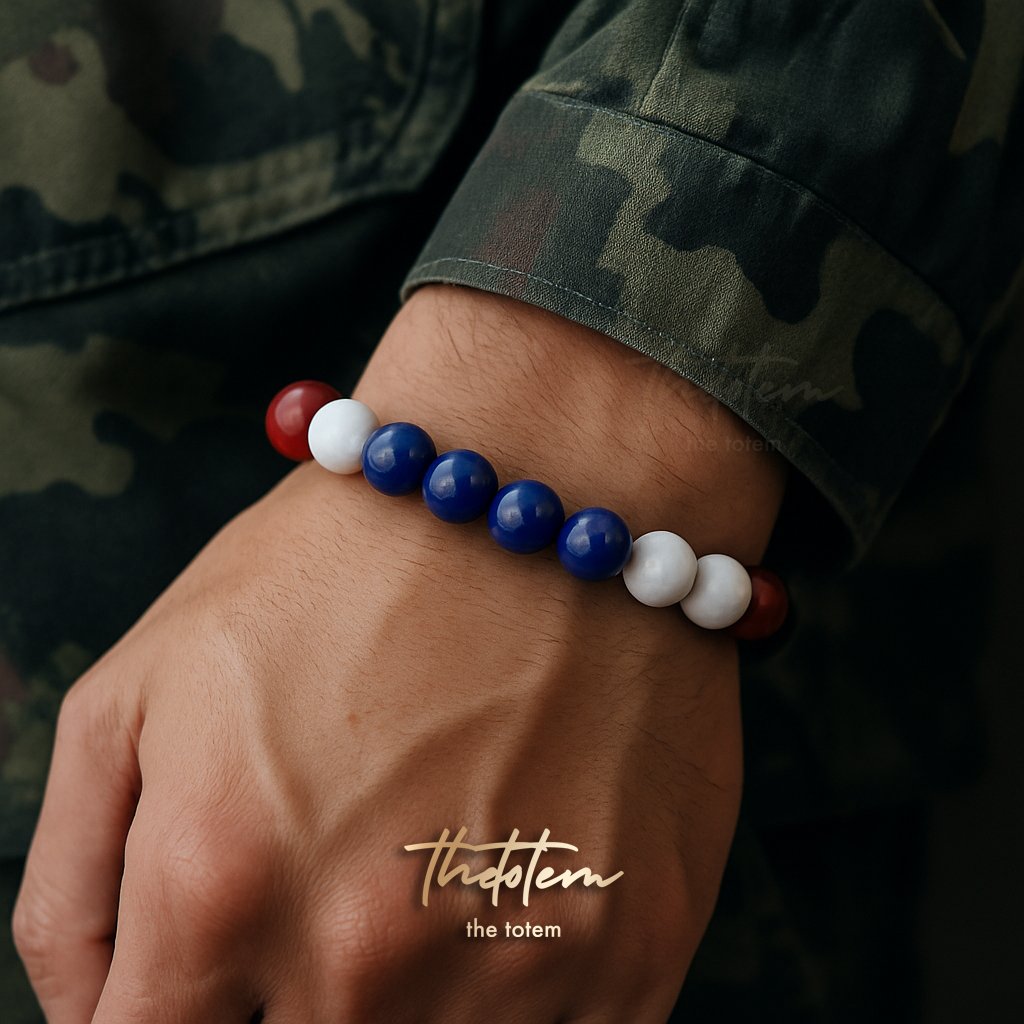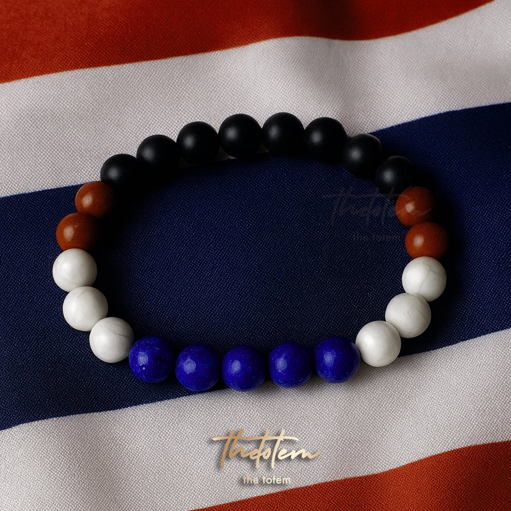 กำไลหินธรรมชาติลายธงชาติไทย ดีไซน์พิเศษ สื่อถึงความภาคภูมิใจและเอกลักษณ์เฉพาะตัว